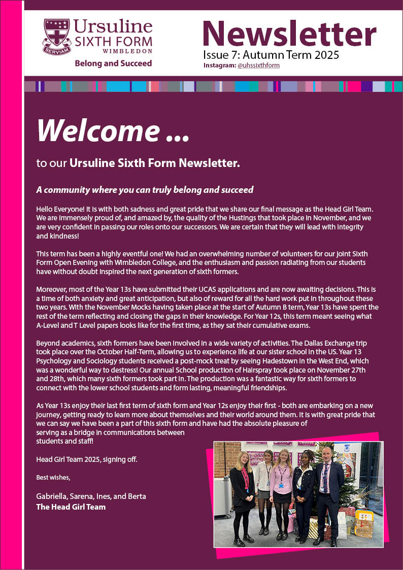 Sixth Form Newsletter Issue 7 Autumn Term 2025