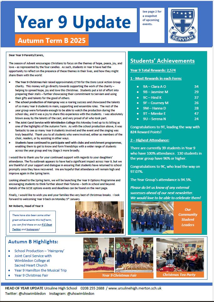 Please click below for the full Head of Year 9 Update Autumn B 2025 newsletter.