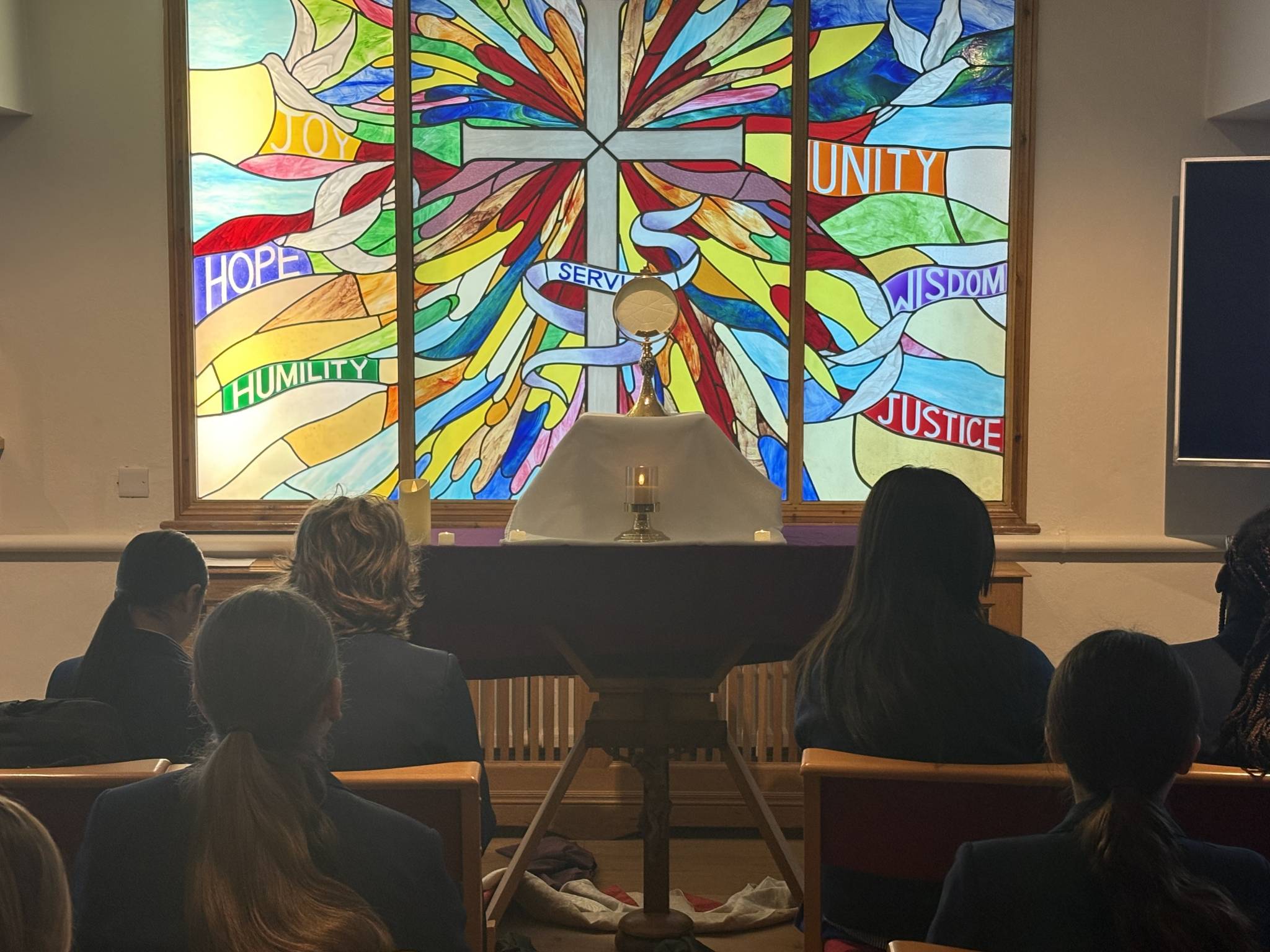 Year 7 RE classes have been visiting the school chapel for short periods of Eucharistic Adoration, giving students an opportunity to pause, reflect, and spend time in prayer before the Blessed Sacrament.